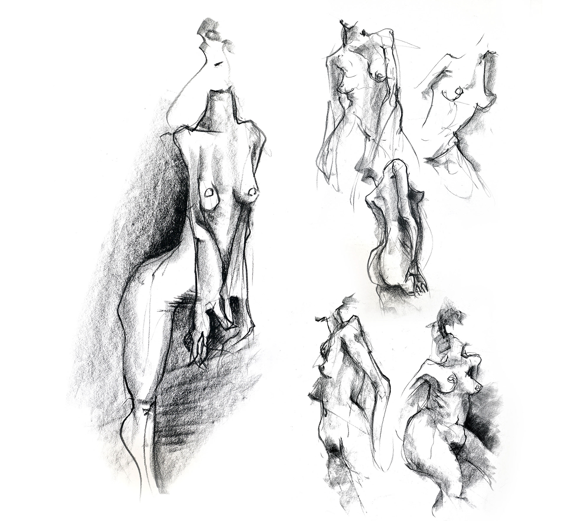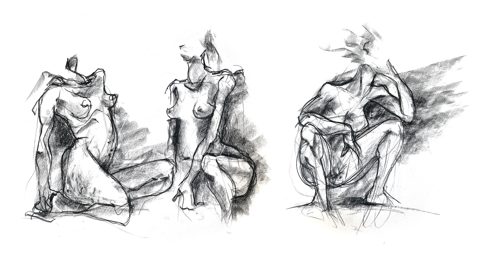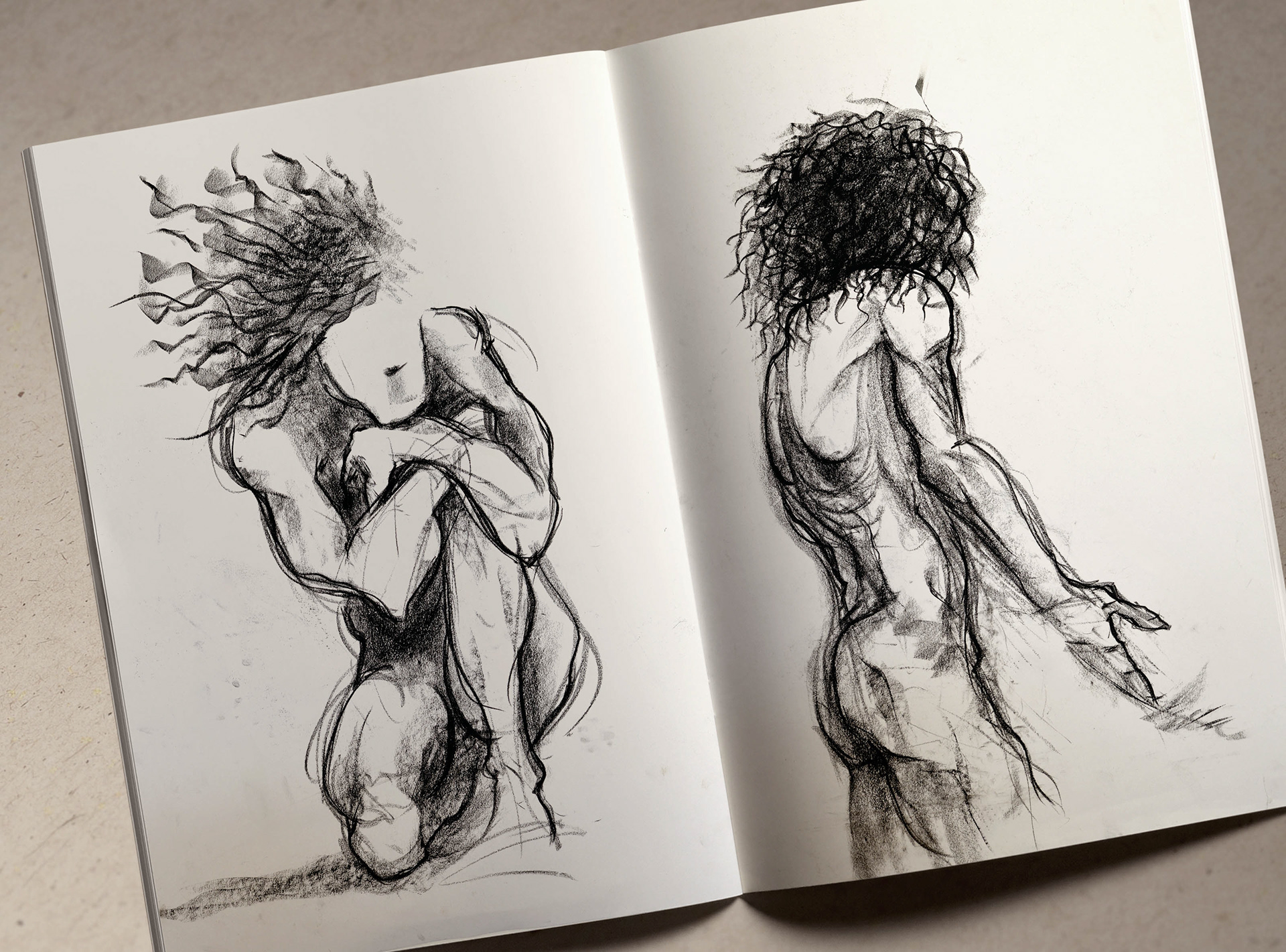 Modèles vivants, poses courtes, gestes spontanés. Encres et crayons captent l'instant : un souffle, une silhouette, une présence éphémère. Sans retouche ni reprise, juste l'énergie du moment.